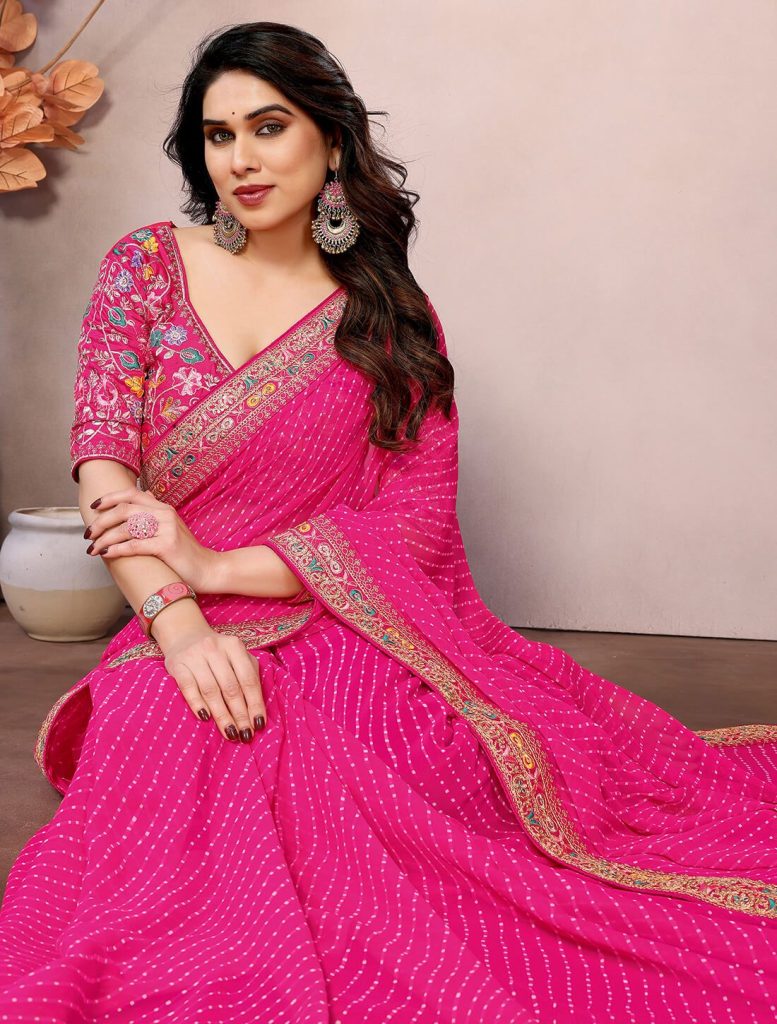 When worn properly, sarees are flattering to anyone. Choose chiffon or georgette sarees that drape well rather than ones made of rigid materials. For plus-size ladies who want comfort and style, pre-stitched sarees are also a fantastic choice.