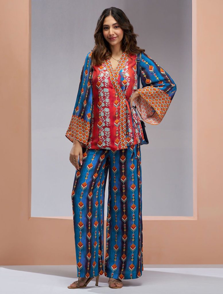 Shararas and palazzos are fast and comfortable. Kurtis or peplum tops with flowing slacks make a beautiful party, wedding, and festival outfit.