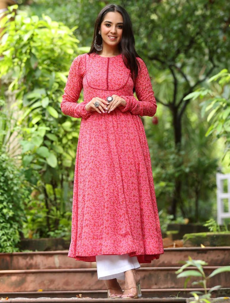 For casual wear, an A-line kurti looks great with palazzos or leggings. It provides comfort without sticking to the body by softly flaring out. Pick designs and patterns that reflect your individuality, such as geometrics or flowers.
